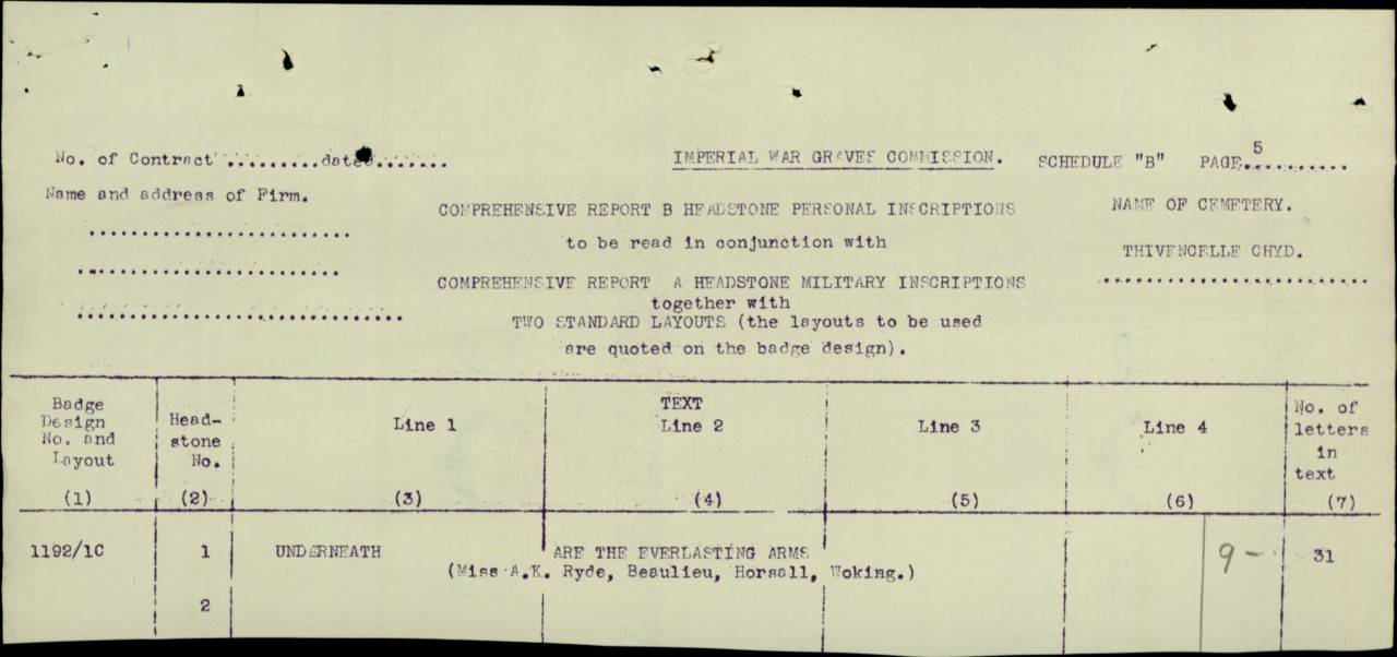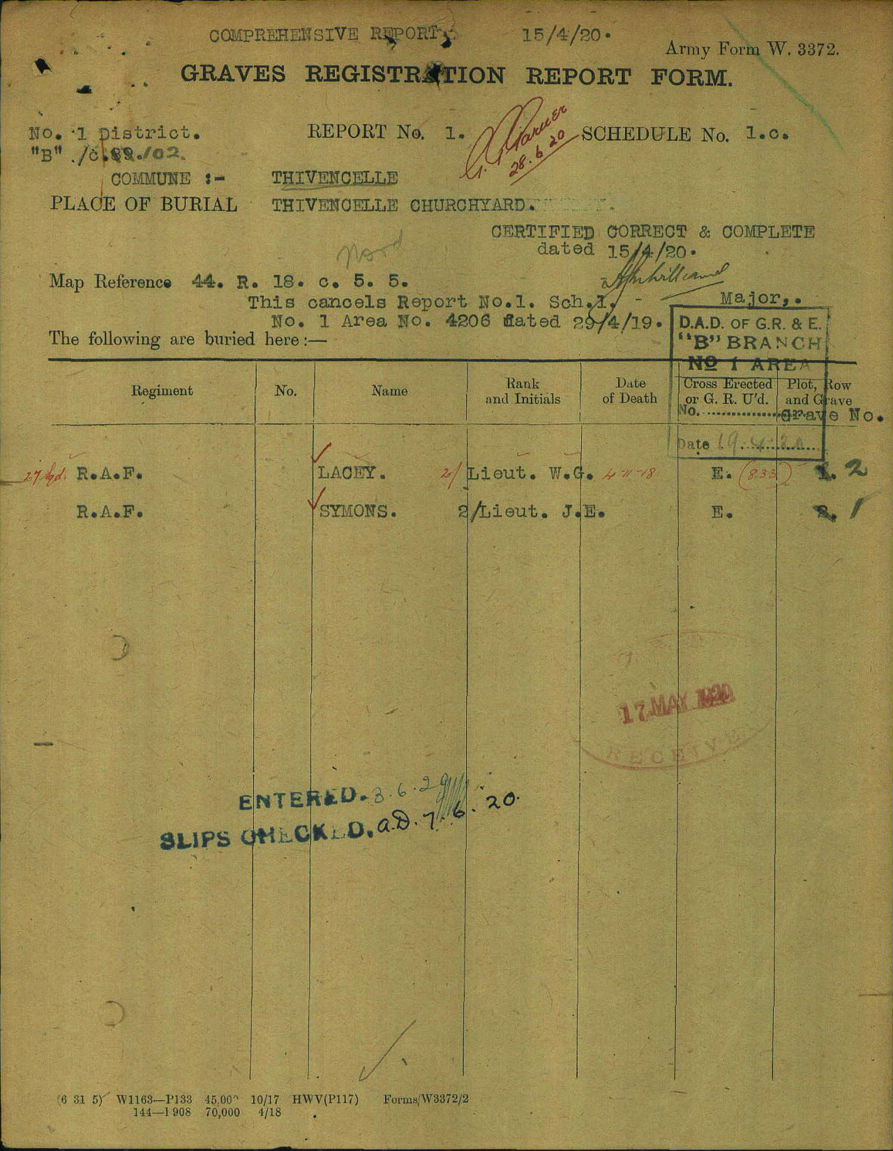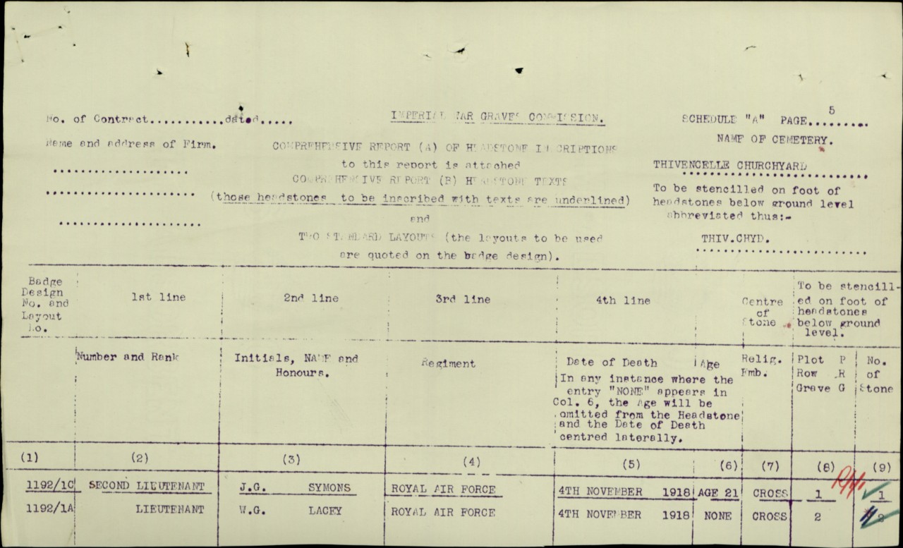 le cimetière de Thivencelle. Il s'agit du lieutenant W.G. Lacey et du